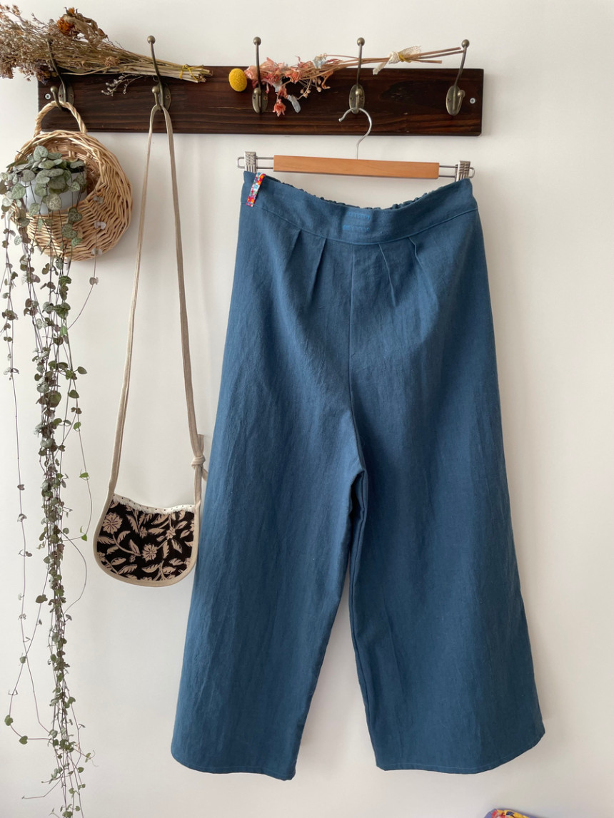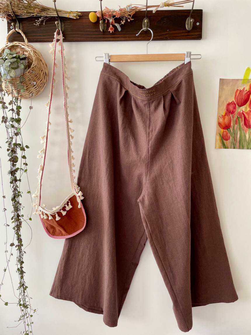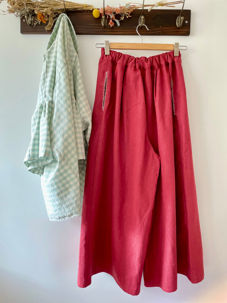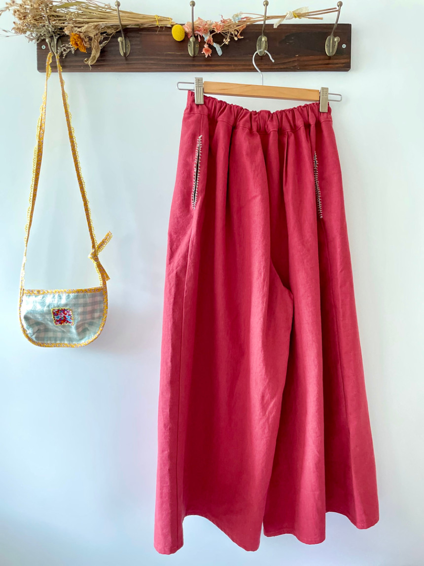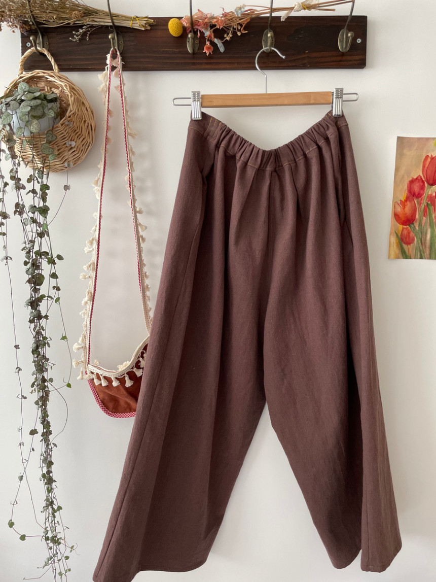 레트로 힙 와이드 뒷허리 밴딩 모던 핸드스티치 양포켓 모던 린넨 면 데일리 wide pants