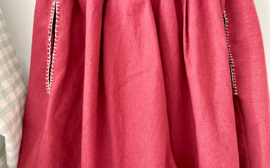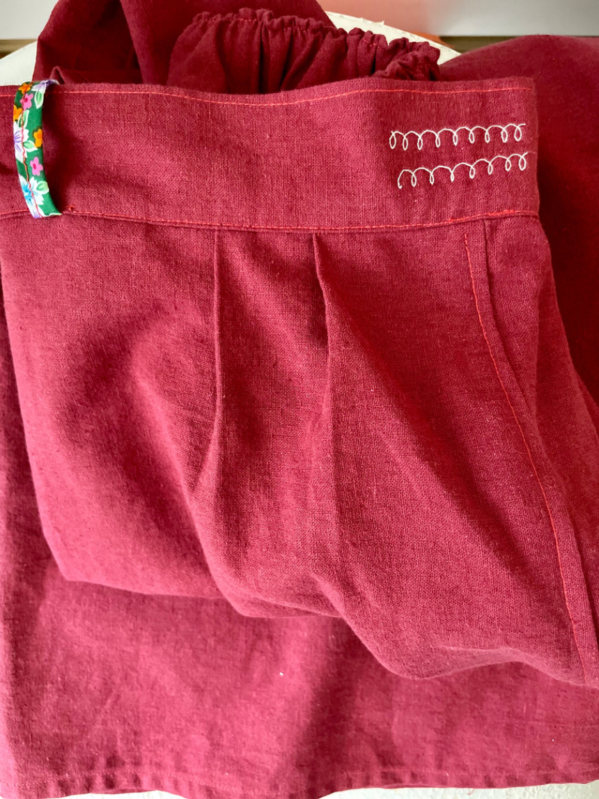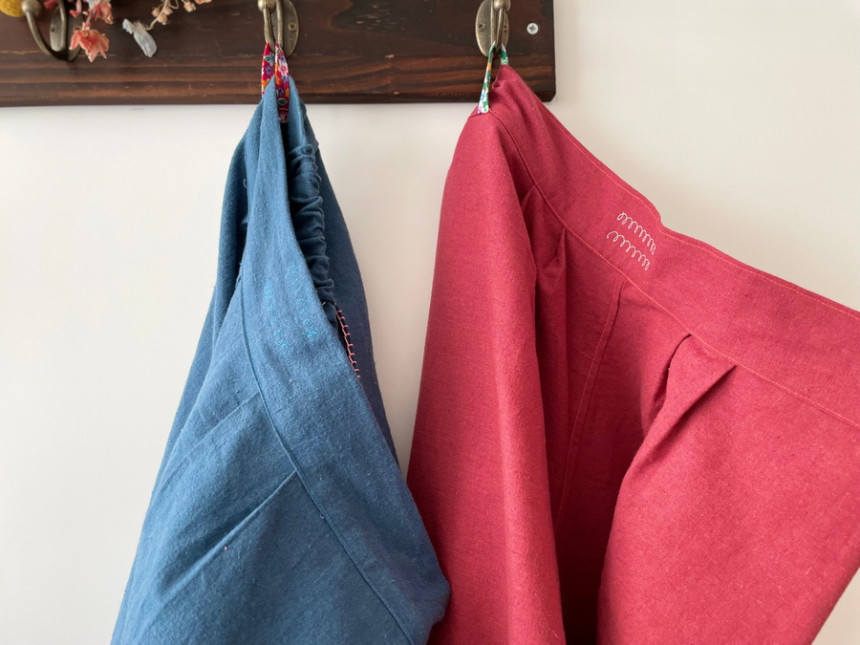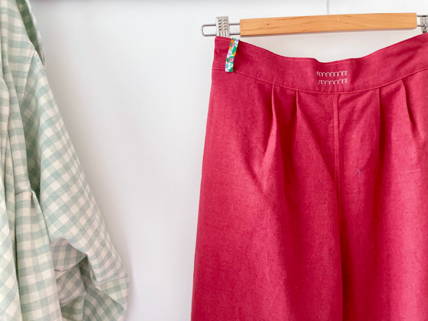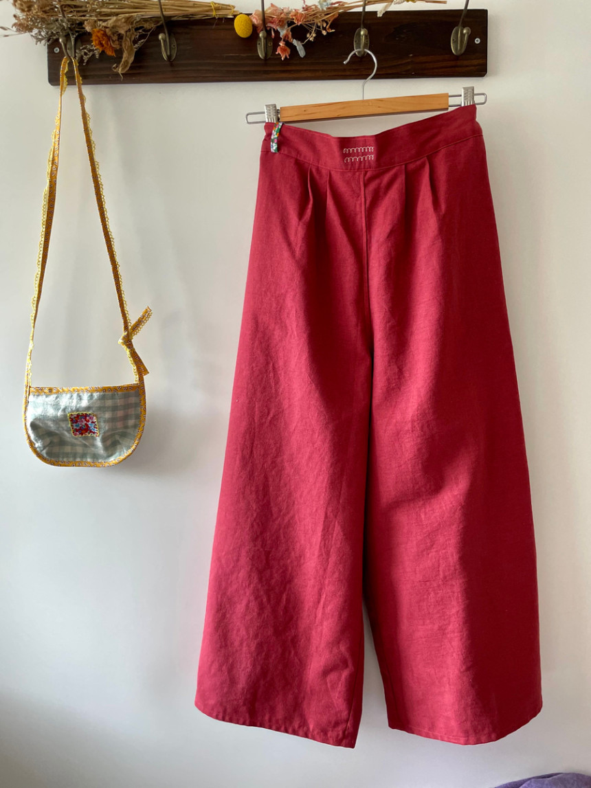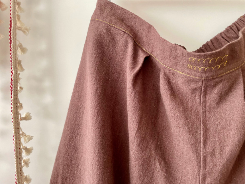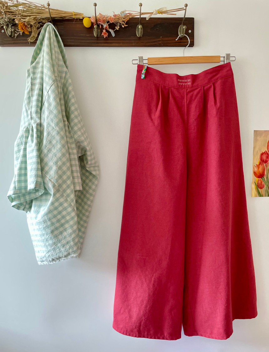 레트로 힙 와이드 뒷허리 밴딩 모던 핸드스티치 양포켓 모던 린넨 면 데일리 wide pants