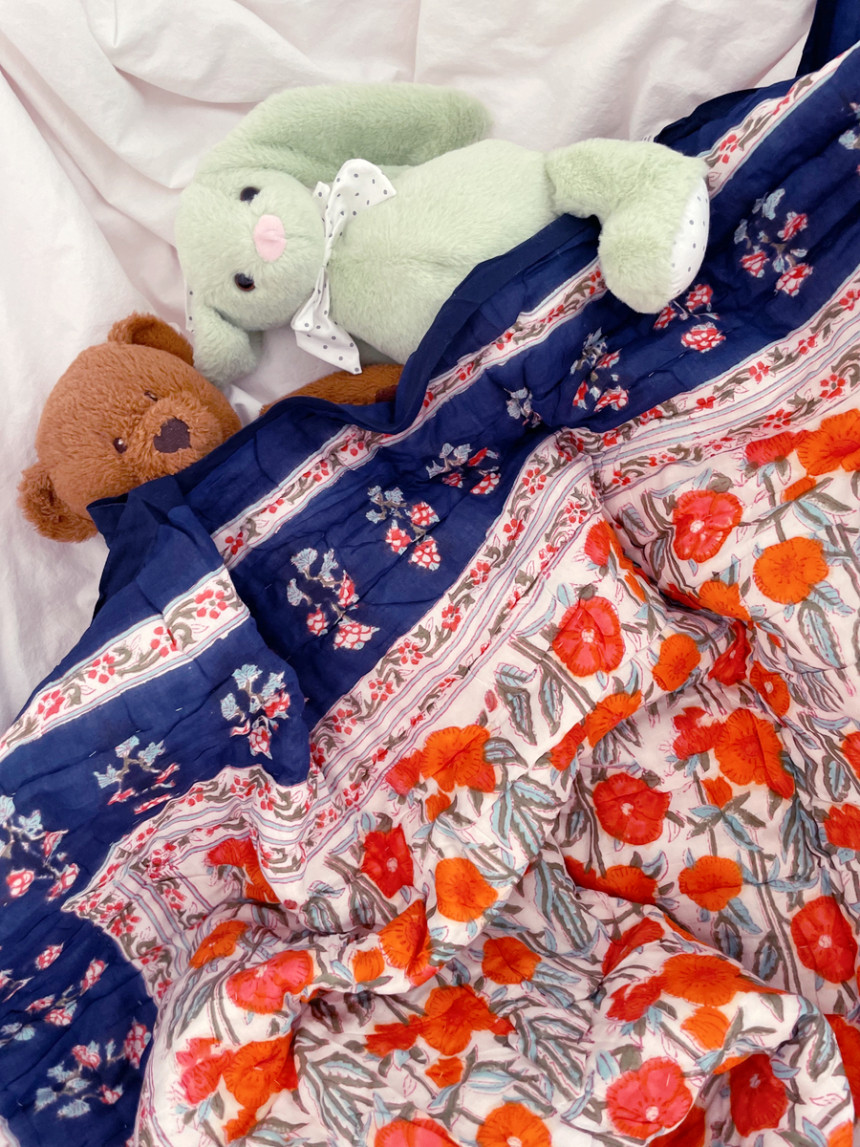 슈퍼싱글 목화솜 이불 시리즈2 포근한 데일리 따뜻한 보온 담요 동백꽃 블루
