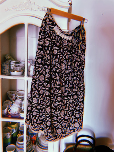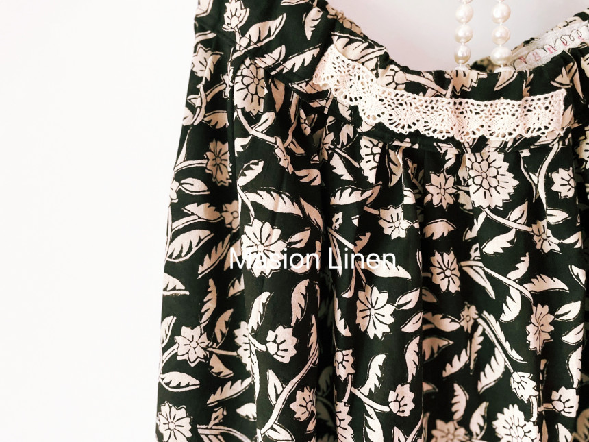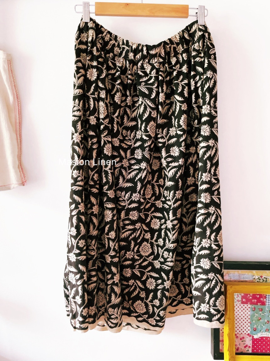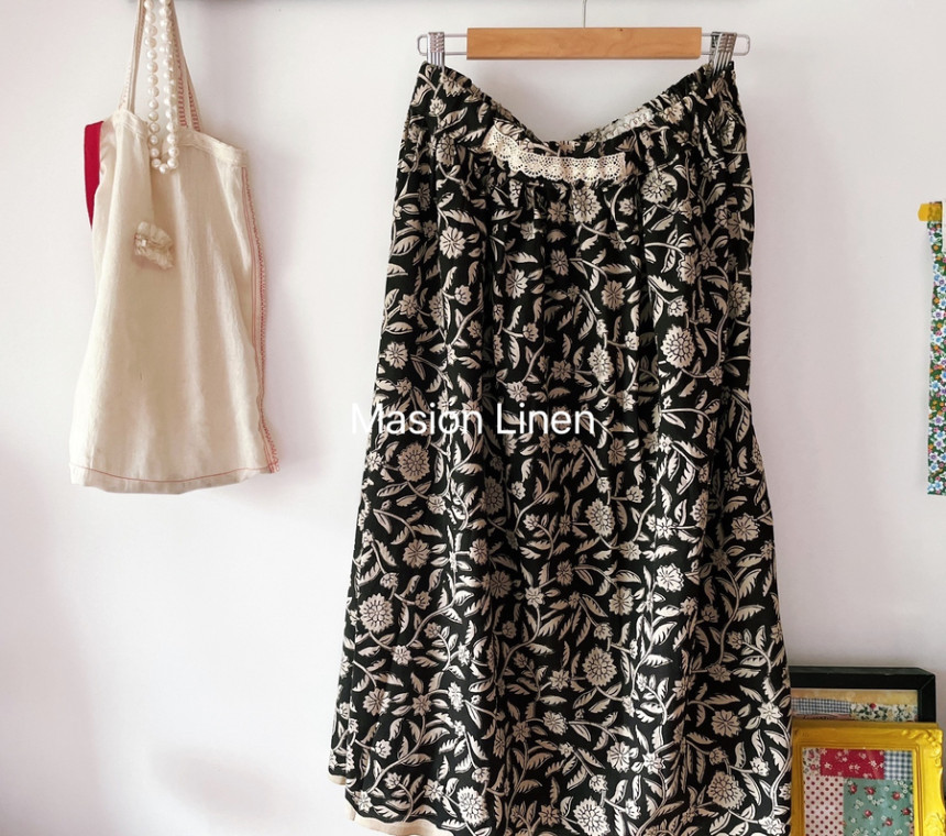 "[Special Edition] 자연주의 핸드블록 검정장미 데일리 감성 자연주의 허리밴딩 스커트"