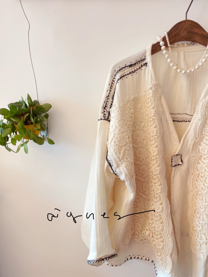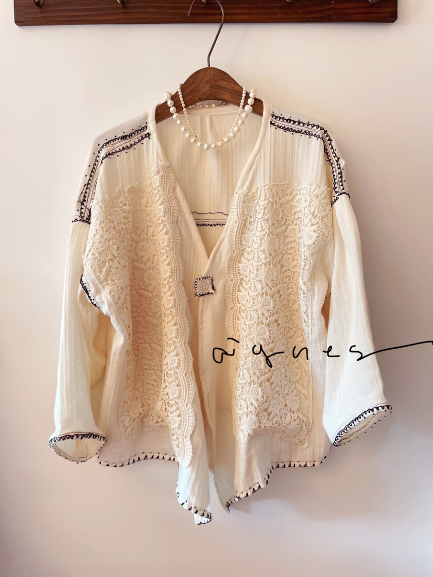 🏷️ 바이오워싱 이중거즈면 손자수 로브 가디건