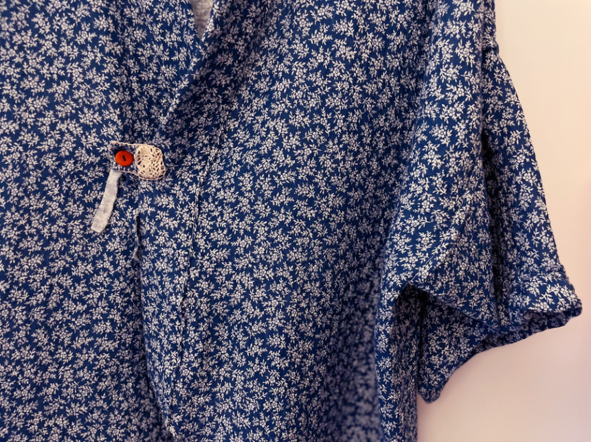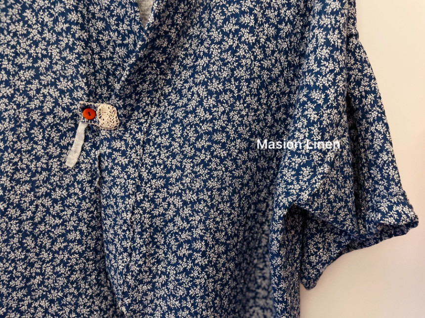 매일 그대와 하얀꽃 이중거즈면 반팔 편안한 자연감성 데일리 로브