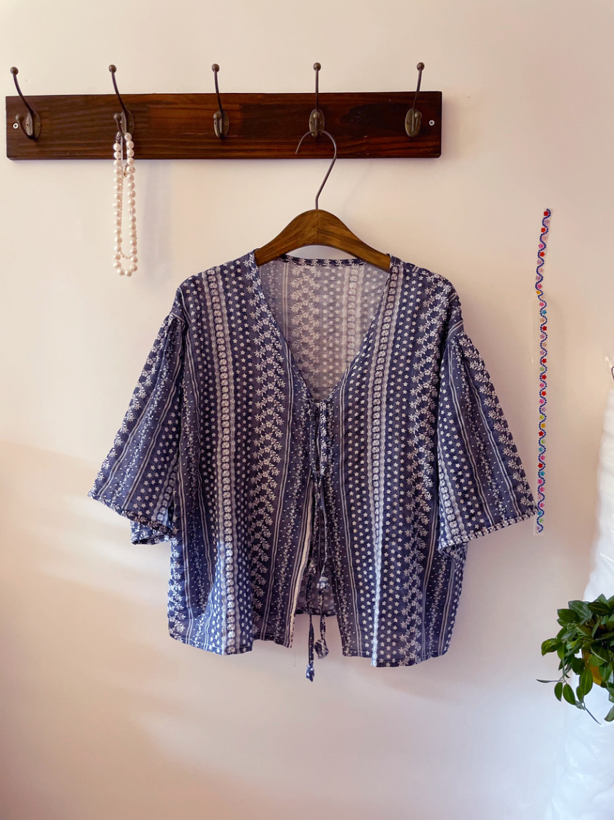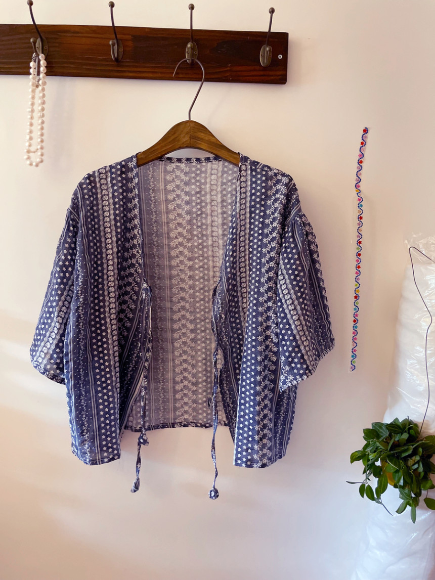 보헤미안 꽃무늬 데일리 모던 반팔 로브가디건
