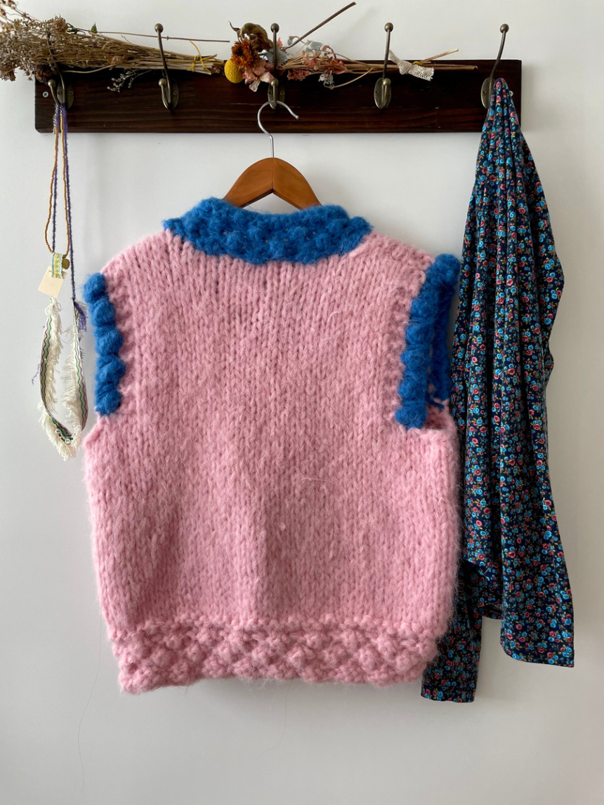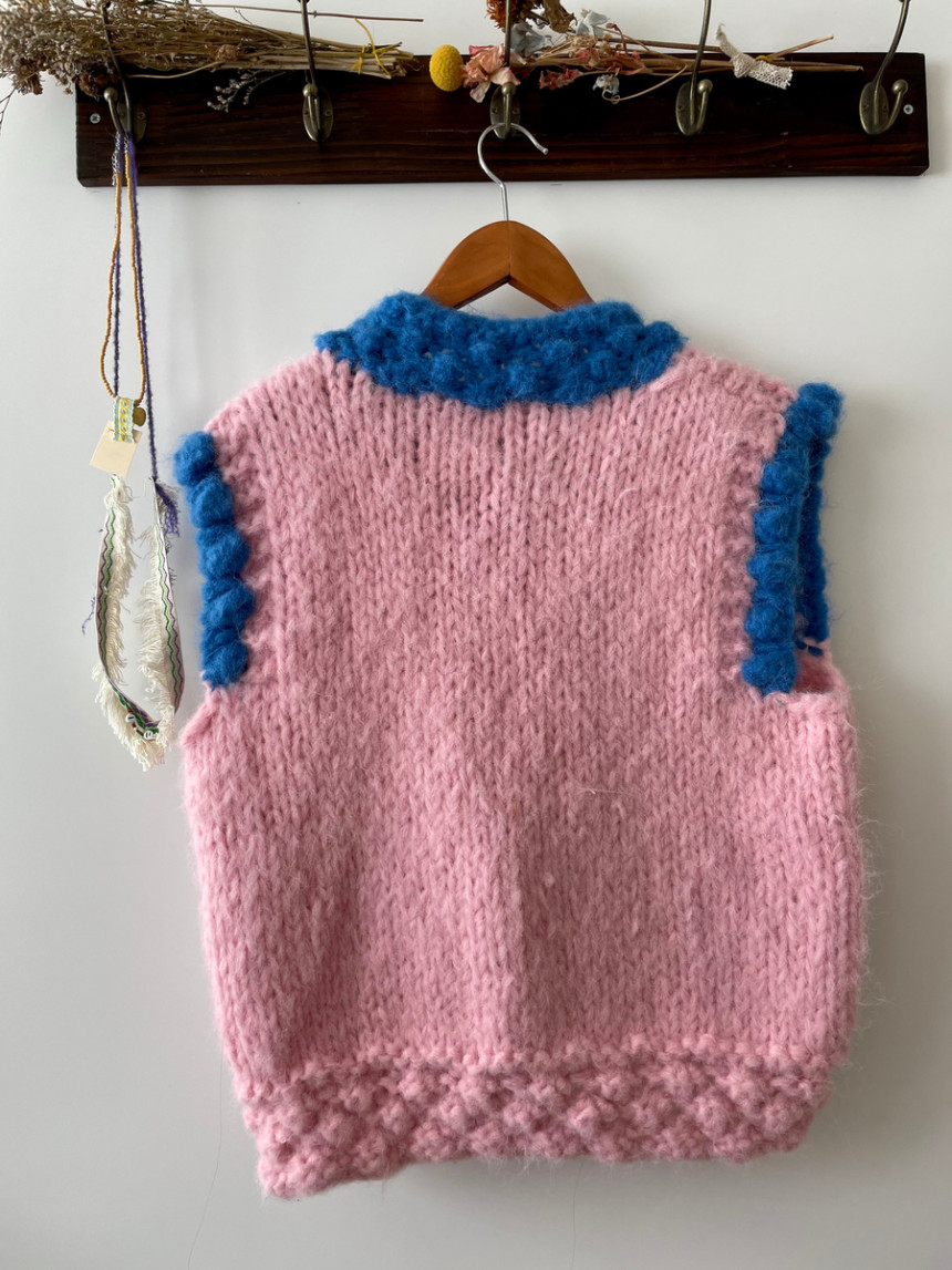 스트로베리 샤벳느낌의 핸드니팅 조끼입니다.