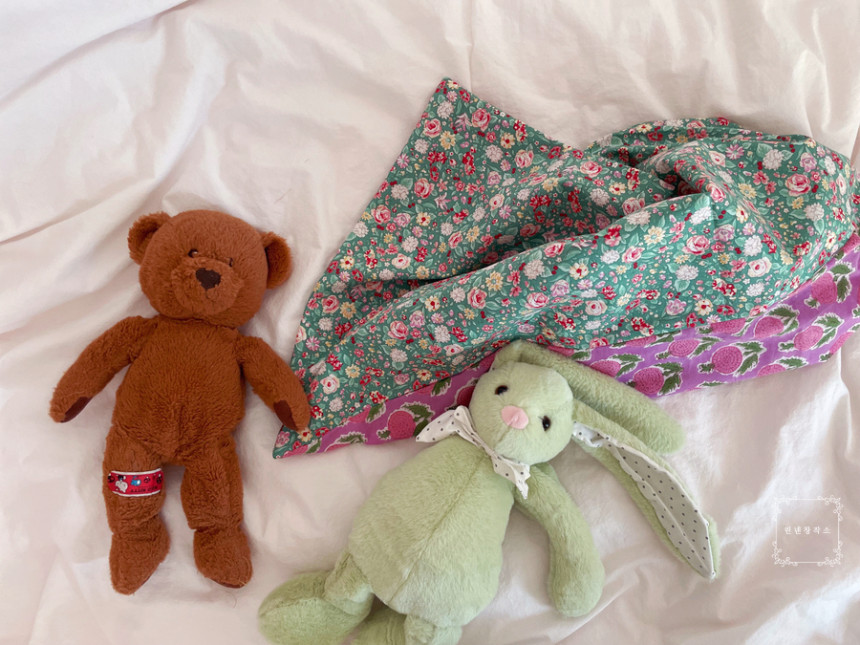 요렇게 자루형으로 한쪽 원단이 더 길어서 베개솜이 안으로 쏙~ 감싸져요