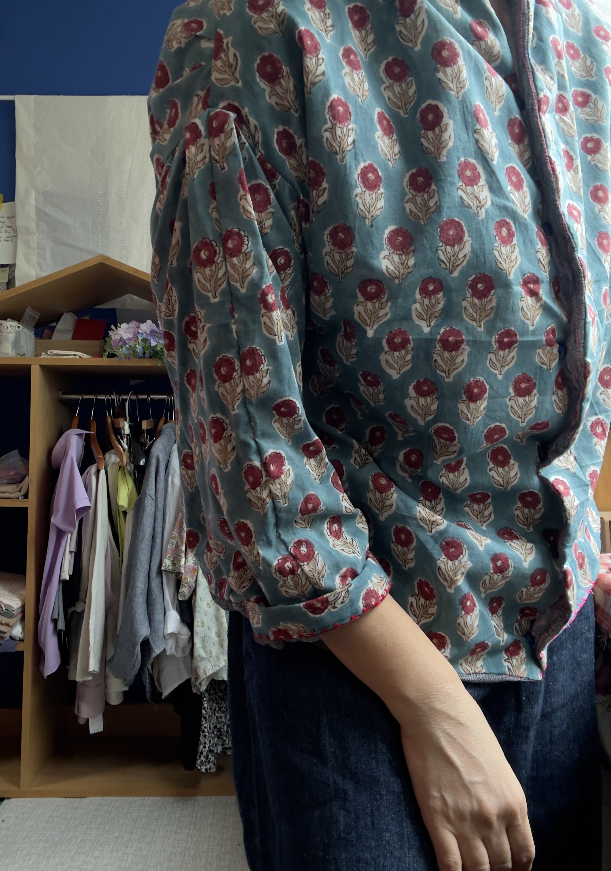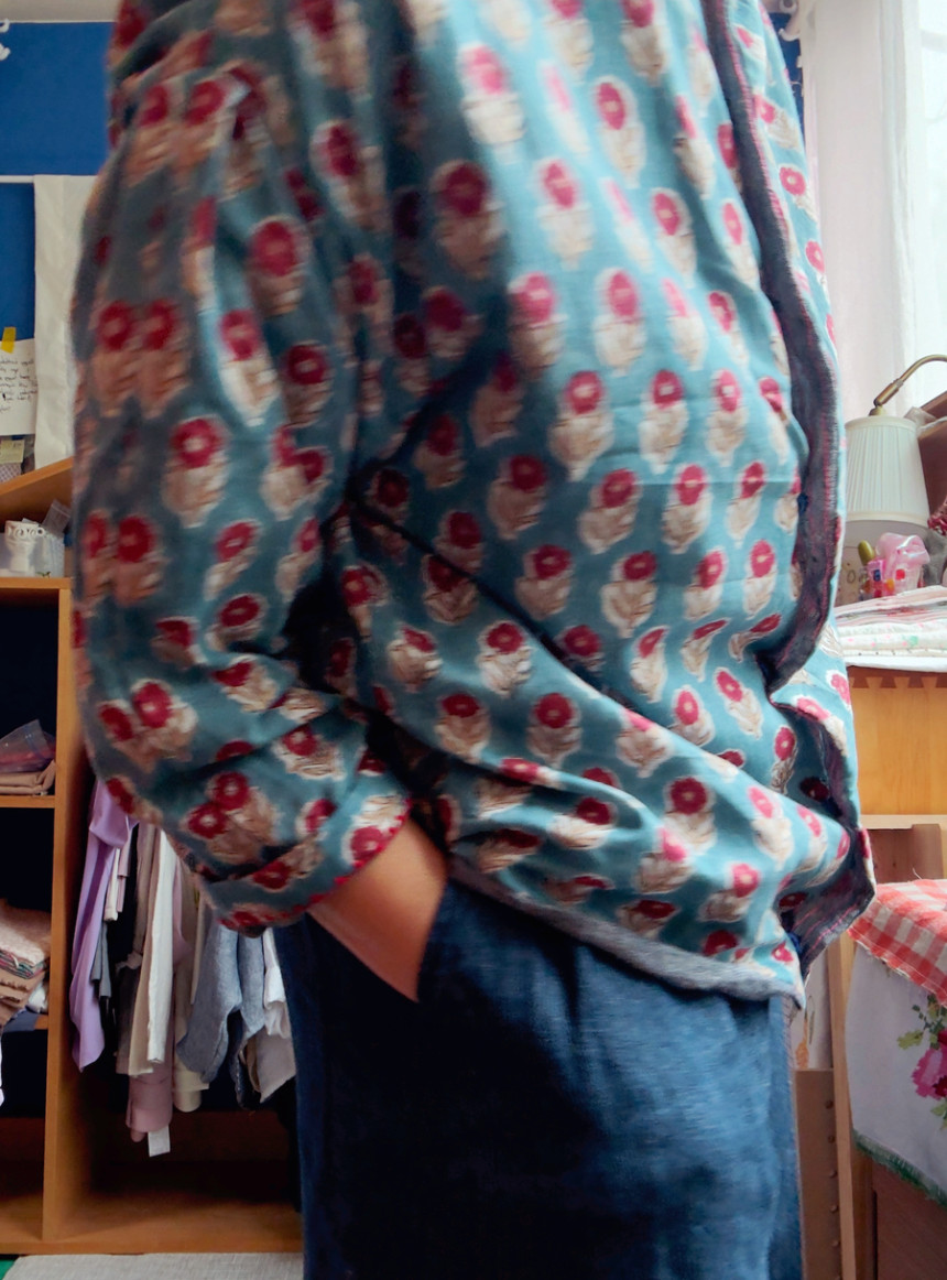 핸드블록 아사면 원단과 린넨거즈로 블라우스 자켓을
