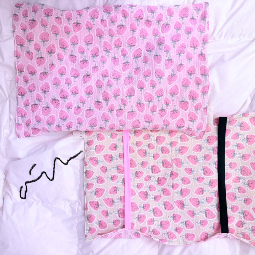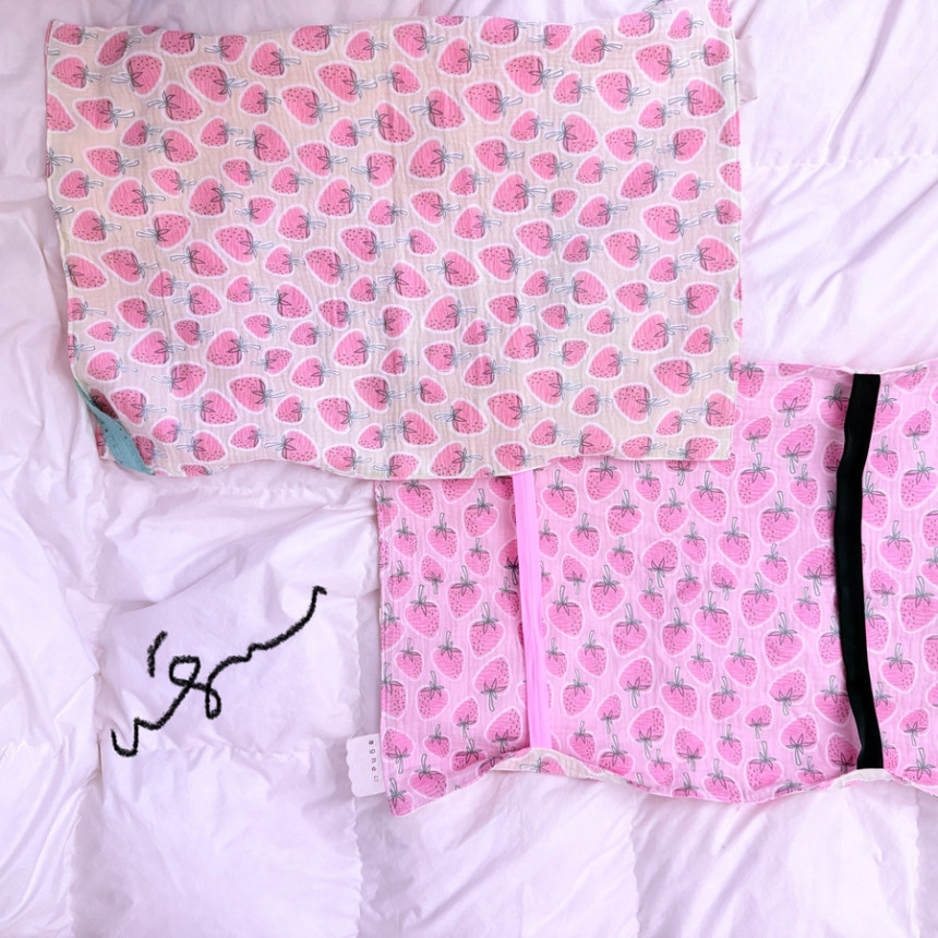 [베갯잇] 핑크 딸기무늬 이중거즈 순면100% 양면사용 밴딩 베개덮개커버 파스텔핑크 옐로우