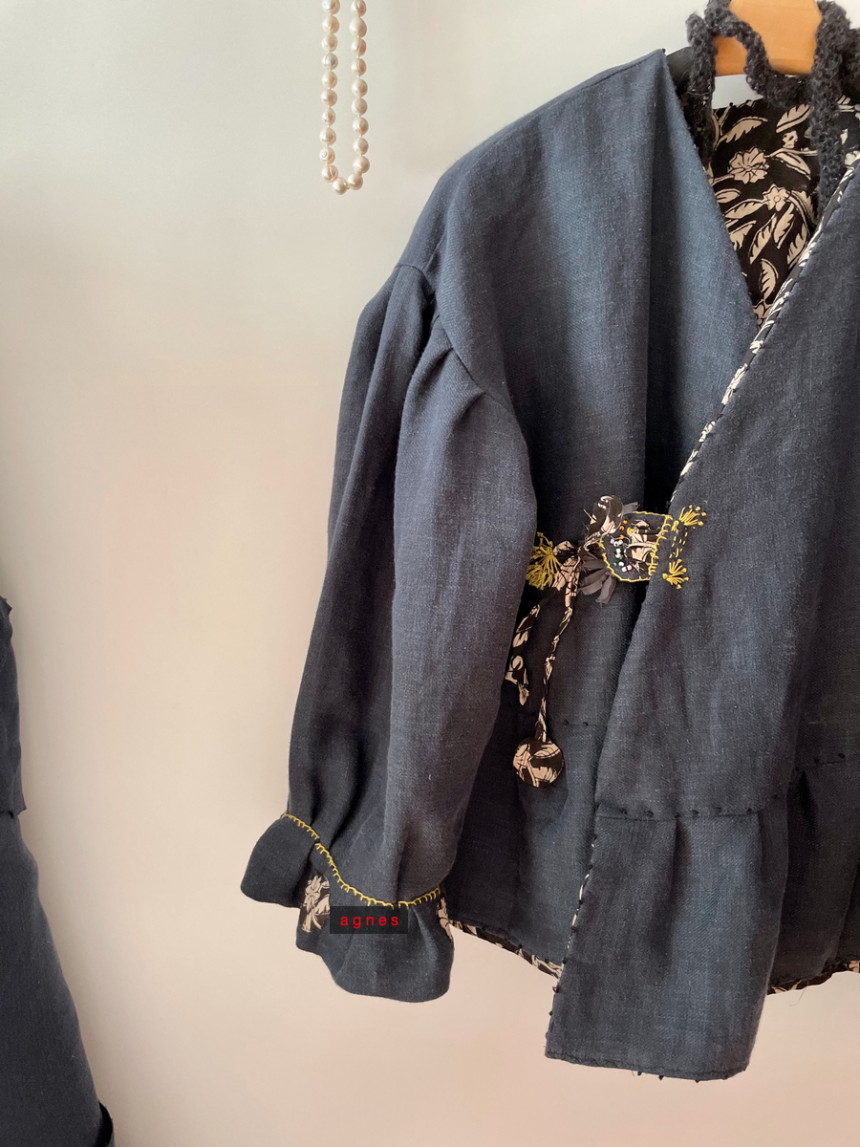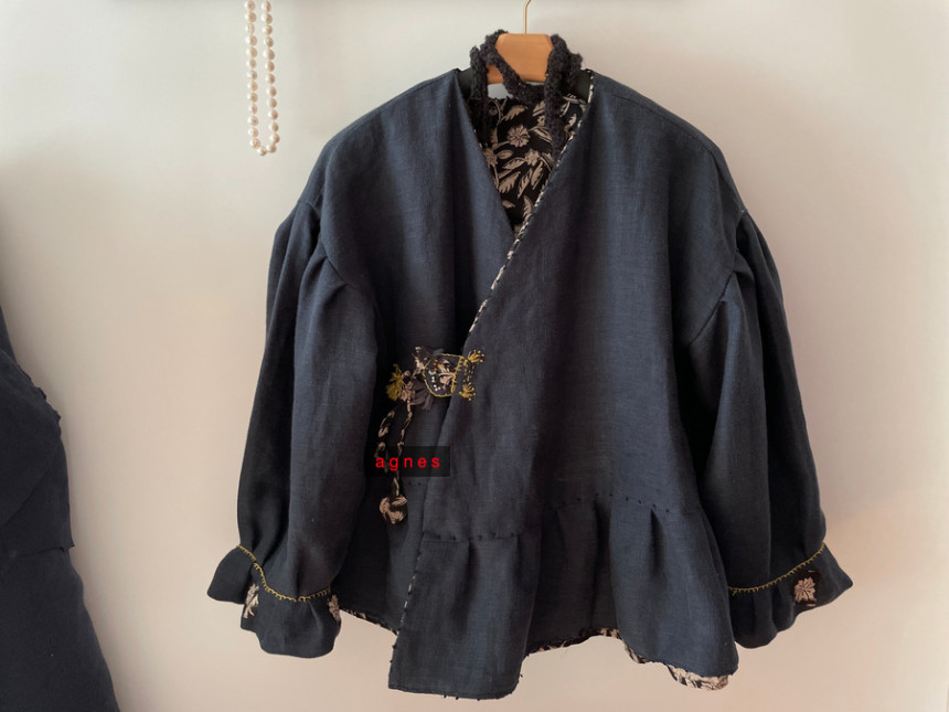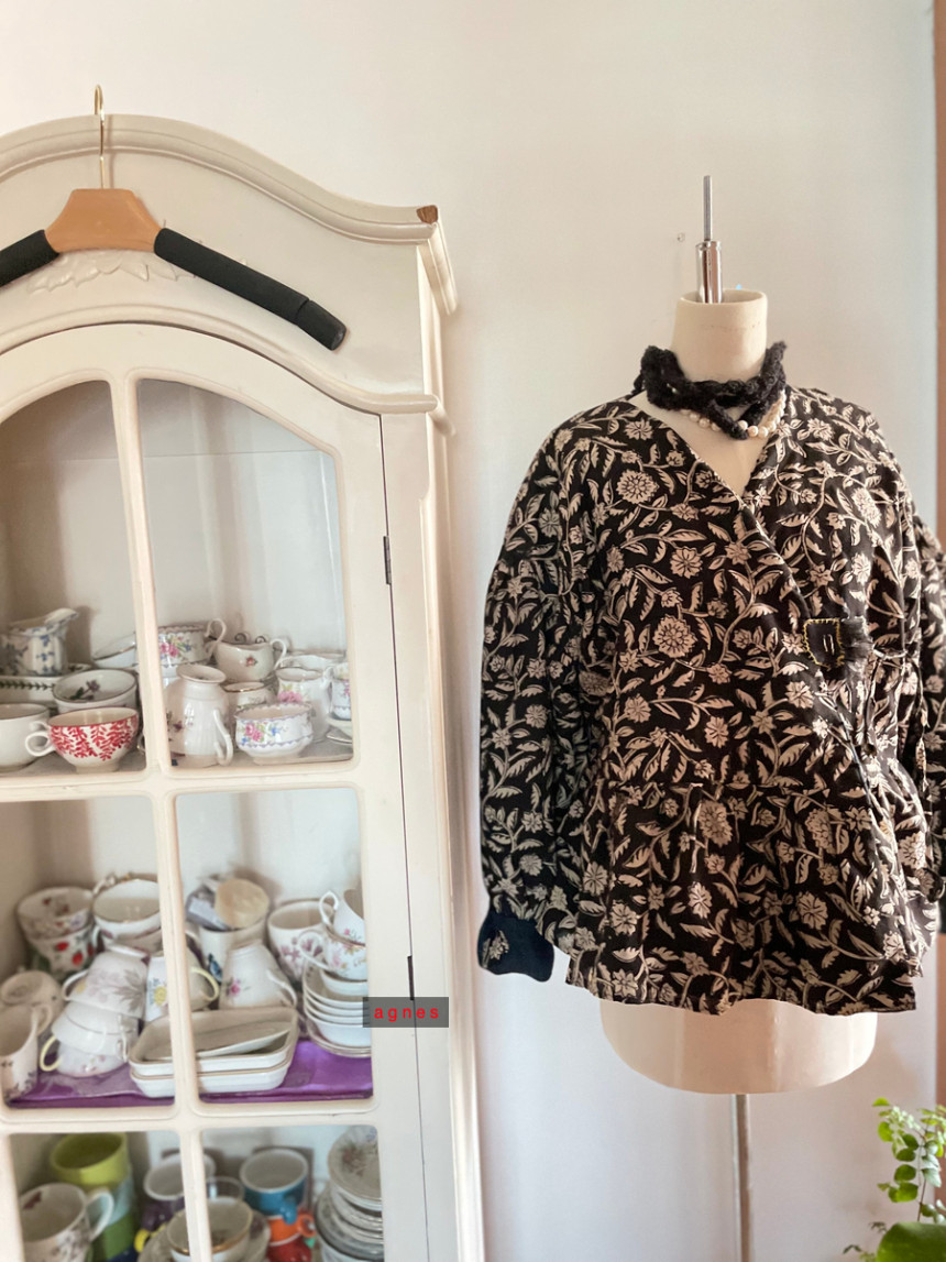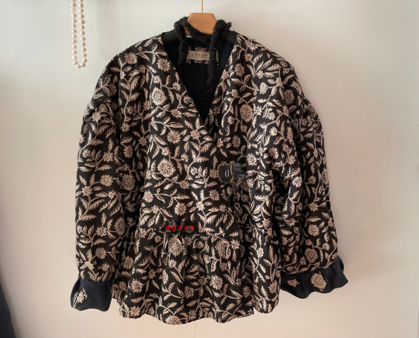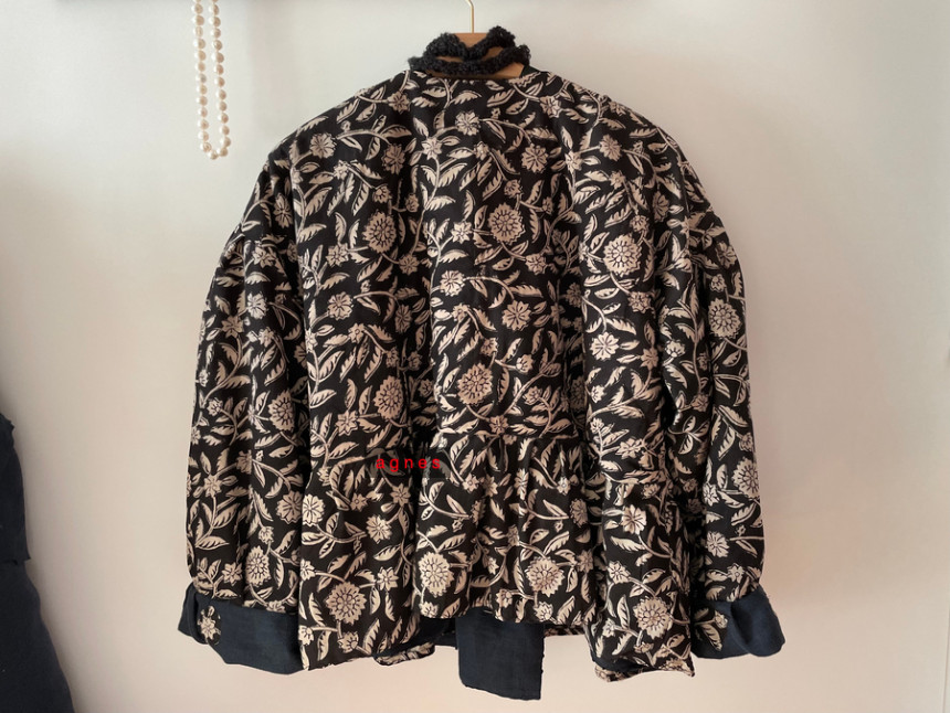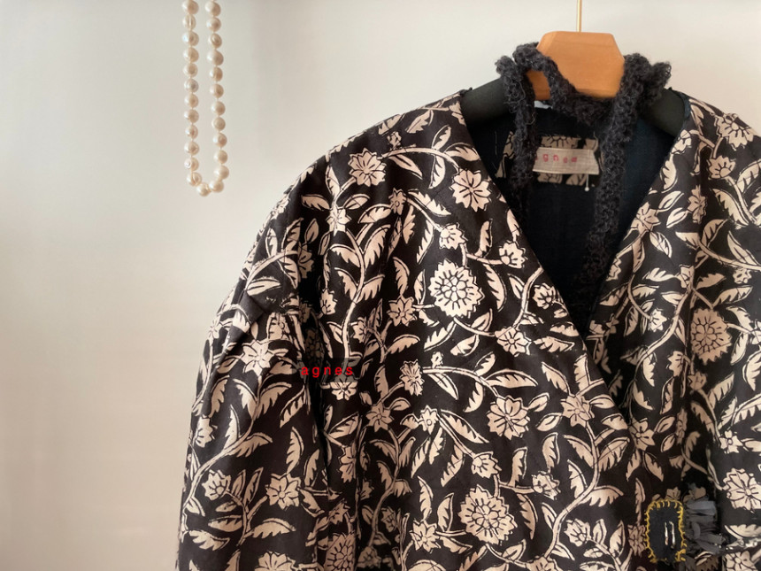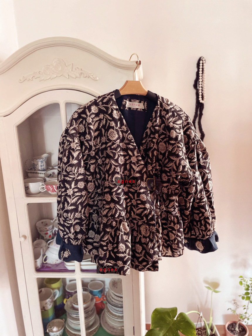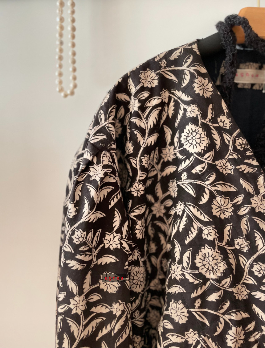 핸드블록 흑장미 양면 리버시블 모던 데일리 카슈쾨르 로브 겨울 자켓