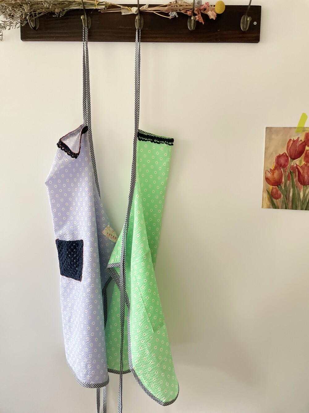 "민트,연보라 지지미 시어서커 데일리 크로쉐 포켓 바이어스 주방소품 앞치마 Apron"