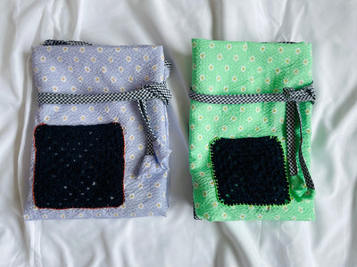손으로 크로쉐한 작은 포켓과, 상단의 부분에 디테일링을 담았어요.